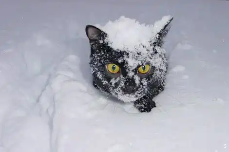 Городские киски видят снег только из окна, а деревенские развлекаются по полной. Разнообразие зимних кошачьих видов спорта поражает, это и сноупрыгинг и сноуползинг он же сноукрадинг, сноуловинг мышей да всего и не перечислишь.