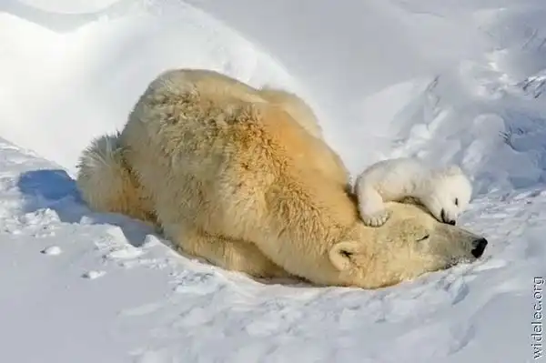 медвежата такие белые прям,по сравнению с большими медведями)
