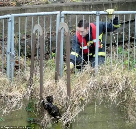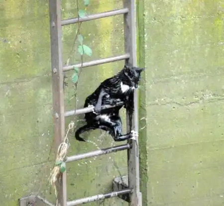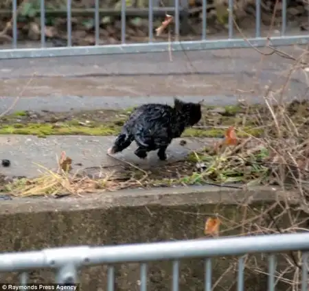Малыша смыло в реку, но на сушу выбраться он сумел. Осталось вот только забраться наверх...