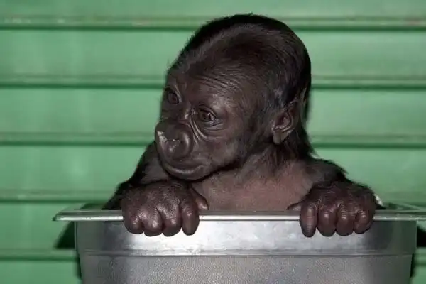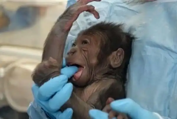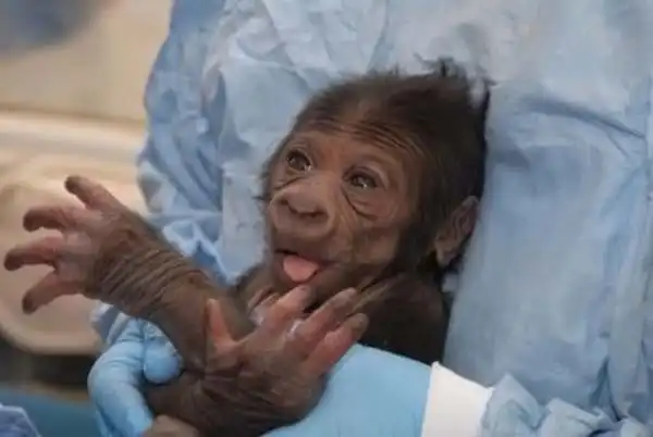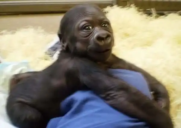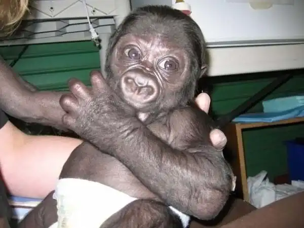 Ну ребёнок и ребёнок! Только нос подкачал,а глаза человеческие.