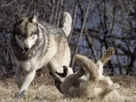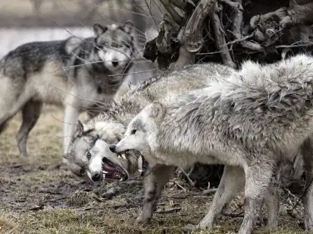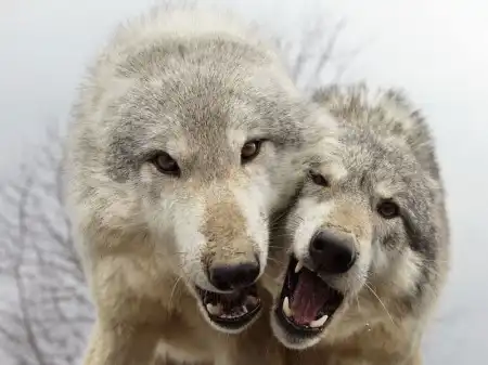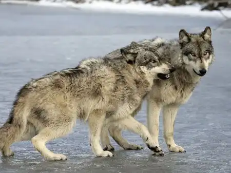 видел в реале... большие... без оружия человек против него не выстоит. Самцы достигают 95 кг. Зубы это без преувеличений - лезвия. Кусают со знанием дела - небеспорядочно. Лося могут приследовать по снегу на расстояниях свыше 50 км.