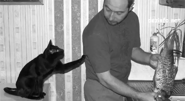 помню как бабушкина кошка у разговаривающего в тот момент отца жареного карася из рук стащила)))