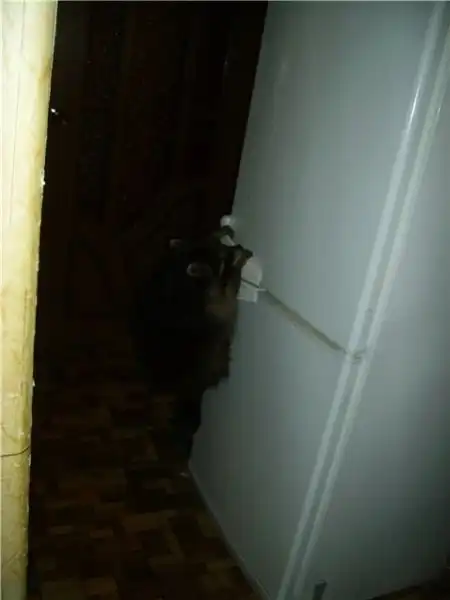 И не успели мы оглянутся как Семён уже пытался открыть холодильник, видимо захотел покушать.
