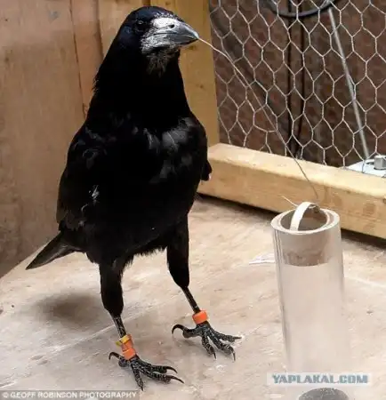 Не ворона это а Грач из того же семейства(вороновых),опыт это проводили для изучения интелекта птиц выросших в неволе,не общавшихся с представителями своего вида!Значит и не получавших обучения(опыта) от сородичей!Для того что бы достать корзинку с червячками он(и еще три )с первого раза догодался согнуть проволоку,было произведено еще несколько тестов с чем он(они) справились не ошибившись ни разу!!!!!!Читал эту статью вчера в инете.