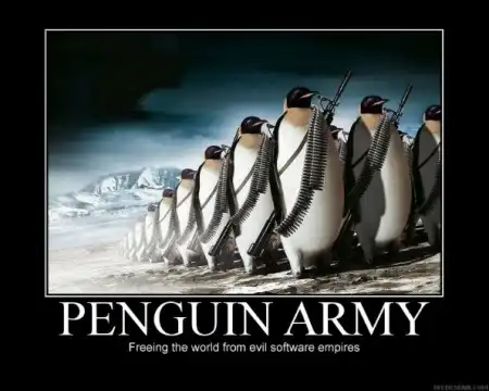 Армия пингвинов освобождает мир от злобной софтверной империи. Гыгыгыгы Линукс форева.