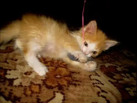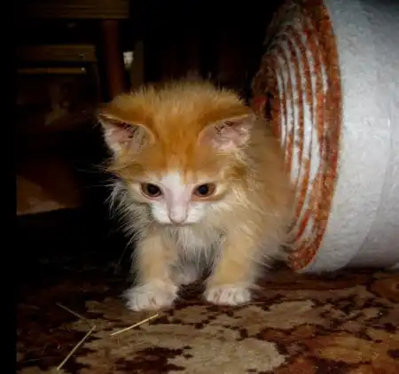 От блох избавлен, будет проглистогонен. Симпатичный малышик, игривый, собак побаивается - с др. кошками сосуществует нормально.