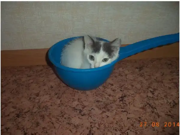 Котенок - кошка,приблизительно 1-1,5 месяца, найдена в подъезде жилого дома, отмыта, накормлена, приласкана. Ищет любящего заботливого хозяина.