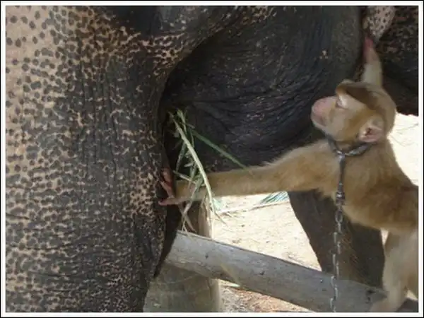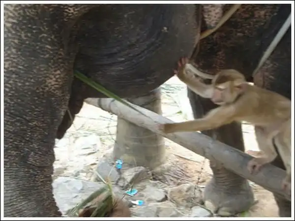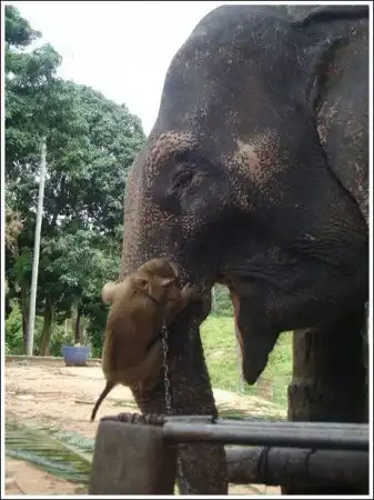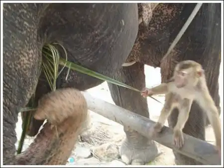 Обезьяна кормит слона