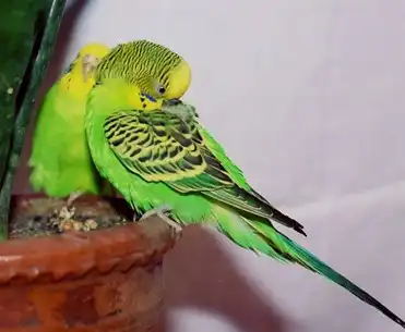 У меня был раньше волнистый попугайчик,голубенькой окраски...но его кот съел