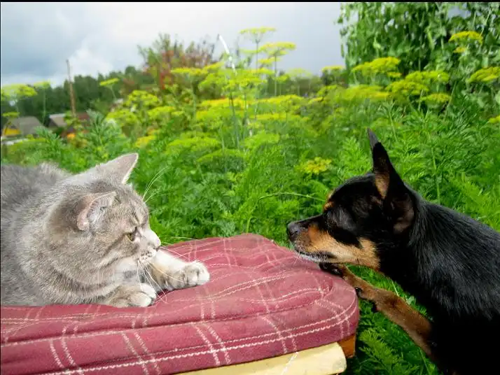 С другими животными – контактирует. При виде маленькой, но злобной к кошкам собаки – не дичился, спокойно смотрел. Даже позволил приблизиться на расстоянии носа. Не обидел, не шипел.Нейтрален.