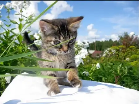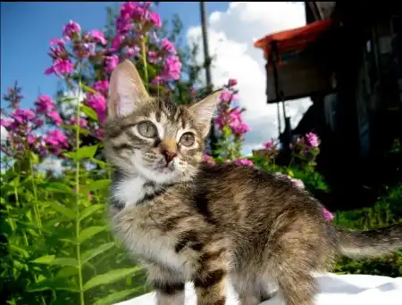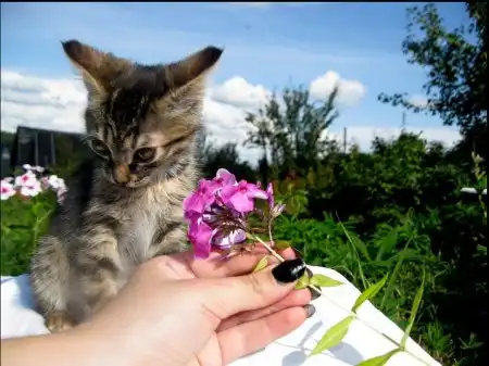 Котеночек девочка.Была найдена добрыми людьми, но держать у себя не было возможности.