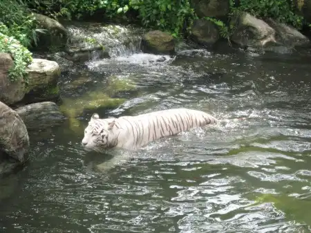 Белый тигр в бассейне.