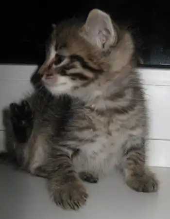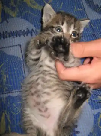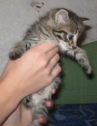 Сегодня вечером недалеко от ЖЭУ-11 (г. Северск) был найден котенок (мальчик), возраст приблизительно 1 месяц. Приютили котенка у себя, отмыли, накормили. Оставить не можем, так как в квартире уже есть взрослый кот, который не желает терпеть новых соседей. Котенок очень игривый и подвижный, после игр крепко заснул. Малышу нужен новый дом и заботливый хозяин. Спешите!