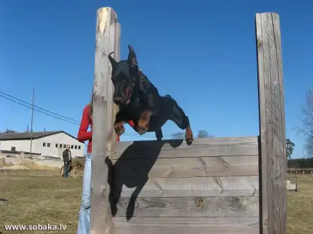 Доберман - порода служебных собак, использующихся для самых разнообразных работ - от службы в полиции до оздоровительного общения с пациентами психоневрологических лечебниц. Это собаки с высоким интеллектом, отважные, сильные, с чувством собственного достоинства, легко усваивающие любые навыки. Эти достоинства будут ярко выражены при профессиональном воспитании и обучении.