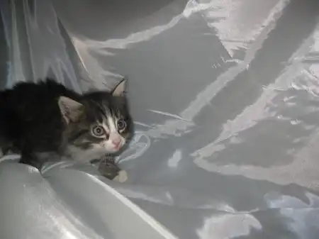 Этой чудесной малышке чуть больше 1 мес., она родилась у бездомной кошки под крыльцом парикмахерской, кошка так тщательно прятала, что маленькой достать не удалось. Просто удивительно, что котята, жившие в таких условиях, совершенно ручные, ласковые и упитанные.