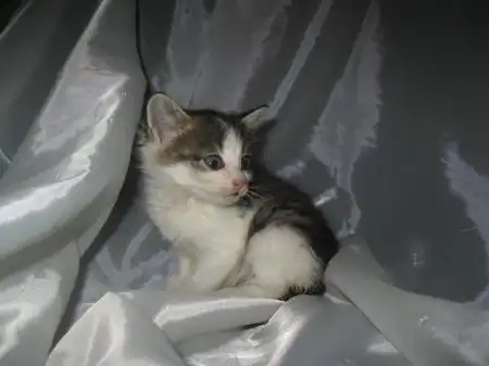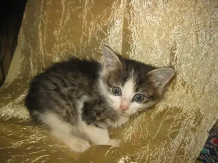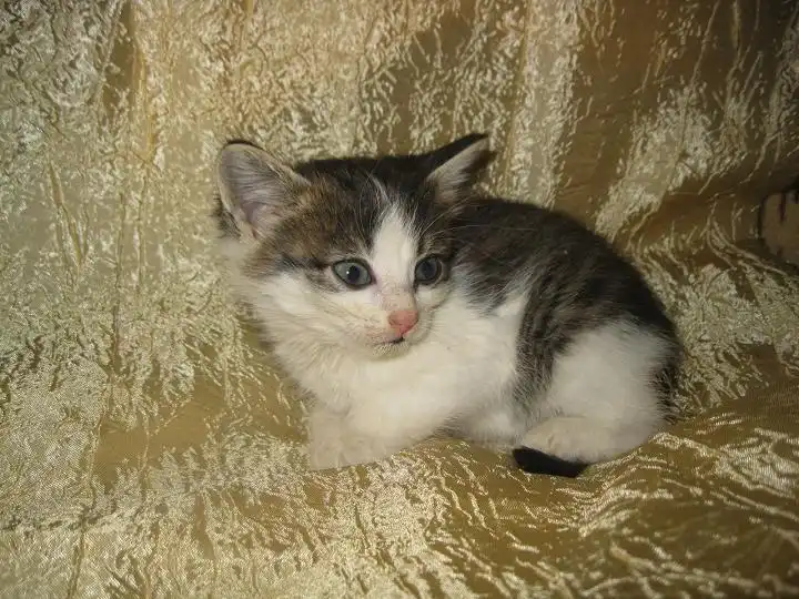 Котенку Дождинке примерно месяц, у нее полосатая спинка и белые животик и лапки. Девочку нашли в подвале на рынке. Дождинка грустная, задумчивая, робкая и спокойная, она как будто понимает, что с ней произошло, и грустит. Ее выбросили, она оказалась ненужной. Она очень хочет найти дом и тех, кто не бросит ее на произвол судьбы, такую маленькую и трогательную.
