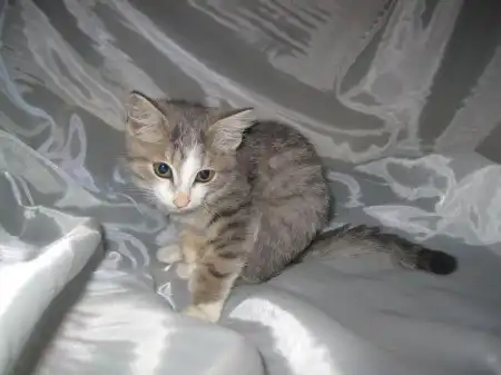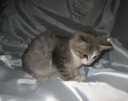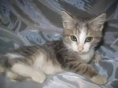 Жемчуг - котенок удивительного окраса, он весь переливается и искрится оттенками голубого, розового, серого и белого, как настоящая жемчужина. Котенок очень ласковый, любопытный, такой приятный, что его невозможно отпустить с рук. Отлично кушает, назначение лотка знает. Котенку примерно 2,5 мес. Найден в подвале на рынке.