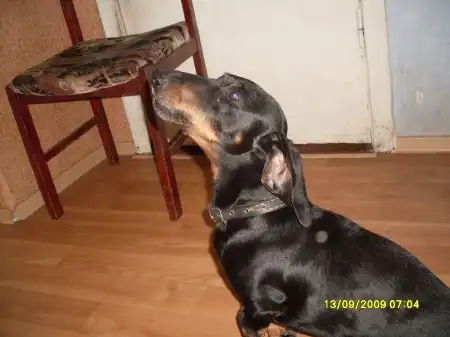 Помогите найти собаку! 3 сентября 2009 года потерялась такса, кобель чёрного цвета, возраст - 3 года. Он без ошейника. Отличительгый признак: с рождения одно яичко. Кличка Лаки.