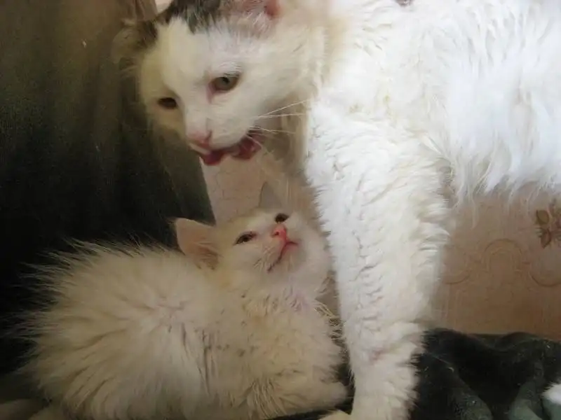 Этот кот "усыновляет" подобранных котят, принимает как настоящий Мапа, "выкармливая" их.