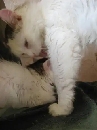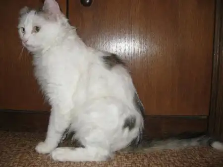 Шерсть, сваленную в валенок, на его теле пришлось обстричь и из пушистого он превратился в гладкошёрстного (отрастёт до переезда к постоянному хозяину)