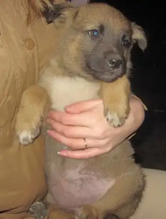 Одна из них точно девочка (есть фото, где она у меня на руках), другой щенок - вроде, мальчик (на одном из фото рассмотрели). т.к. малыш удирал, в руки не дался.