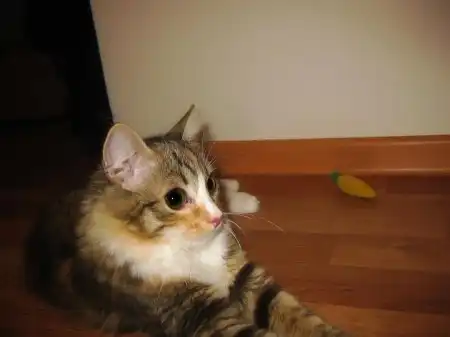 киска Мася, почти четырех месяцев от роду. От нее отказались хозяева по причине аллергии (где-то я это уже слышала). Кисон слегка пушистая, худенькая, с потрясающе красивыми глазами. Таких большущих миндалевидных глаз я до сих пор не видала у домусов.Если бы я описывала ее как женщину, сказала бы: тонкие черты лица и выразительные большие глаза.Несмотря на свою утонченную внешность, обладает характером уличного хулиганистого пацана. Шустрая, быстрая задира, за едой рычит на всех и лапами машет, на руках хочет -сидит и мурчит на весь дом, не хочет-фиг уговоришь.Она для тех, кому прискучило засыпать в тишине и просыпаться под будильник.С ней и засыпаешь и встаешь под топот и грохот, писк и мявк. Лоток знает, но чистюля и привереда, в грязный не пойдет. Ест много чего, но предпочитает натуралку (ливер, курочку) Ищем ласковых, терпеливых и психически устойчивых хозяев без аллергии и др. вредных привычек.
