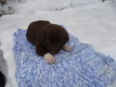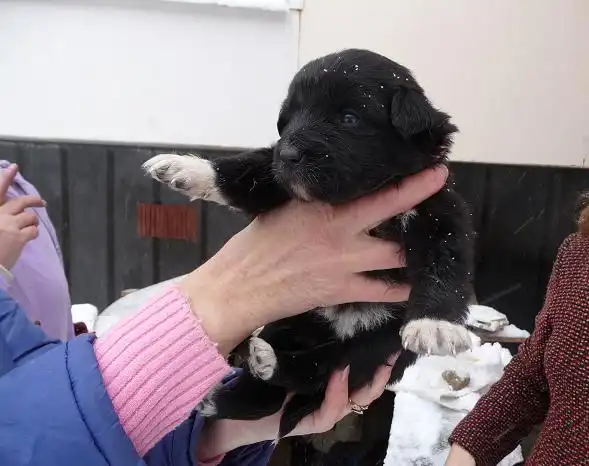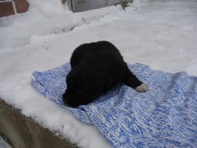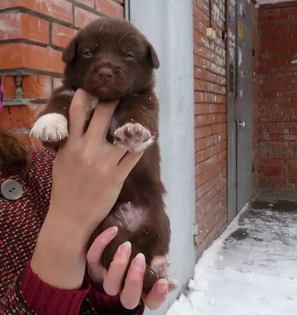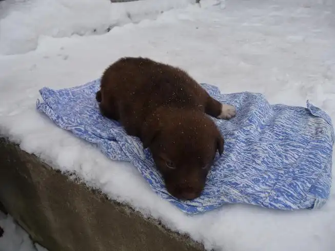 на улице ощенилась собака. в коробке живут 6 малышей. пол точно сказать не можем, есть 3 черных, коричневые.