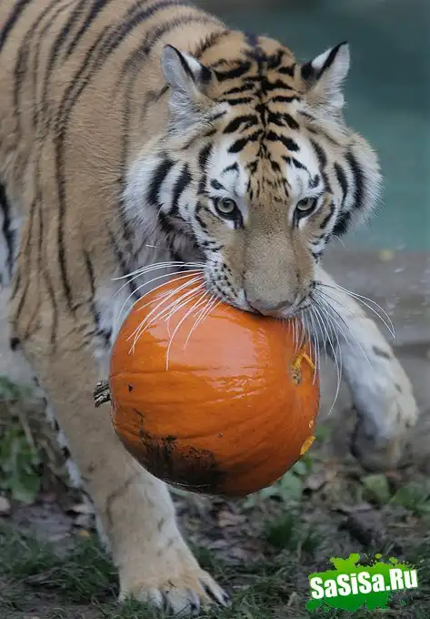 В честь приближающегося Хеллоуина животных в зоопарках американских городов Брукфилд (штат Иллинойс), Сан-Франциско (штат Калифорния) и в зоопарке Лондона угостили тыквами. Вкусное лакомство получили медведи, гориллы, тигры, львы и другие обитатели зоопарков. Хеллоуин – один из самых любимых праздников в западных странах. Он празднуется 31 октября. В этот день принято вырезать рожицы из тыкв, наряжаться в смешные или страшные костюмы и ходить по соседям, прося сладости.