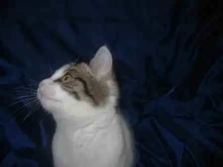Майкла подкинули в клинику. Он там жил некоторое время, развлекал посетителей, которые его ласкали и гладили, и он научился опять верить людям. Белоснежный котенок с серыми пятнышками на спинке и полосатым хвостиком, огромными выразительными глазами, очень ласковый и мурчащий, мечтает о собственном доме и о хозяевах, которые будут любить его, такого милого и нежного.