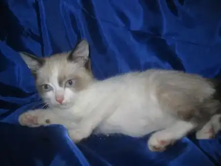Когда смотришь на этого удивительного котенка, сразу приходит сравнение с чем-то очень светлым и нежным. Возможно, это стихи Константина Бальмонта о нарциссах. Так котенок и получил свое имя. Милый, нежный, ласковый мальчик, примерно 2 месяца, невозможно даже подумать, что кто-то его безжалостно выбросил.