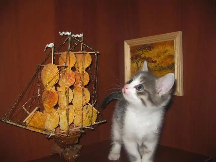 Это Пчелка, вертушка и егоза. Она помельче, но посмышленее. Первая освоила мисочку, лоточек без промахов, вездесущая глазастая непоседа.