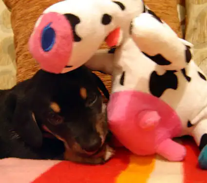 Мальчика зовем Бучей - он черно-подпалый с белым животиком - окрасом пошёл в мамку. Очень подвижный, общительный. В свои месяц и одну неделю уже громко и стрррашно рычит.