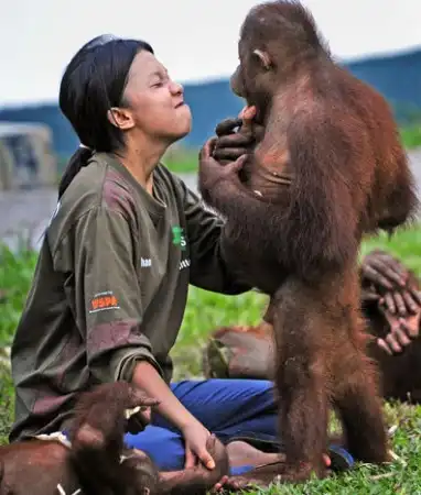 Лоун Дрошер-Нилсен (Lone Droscher-Nielsen) — в прошлом стюардесса Scandinavian Airlines Systems, за 10 лет спасла от неминуемой гибели почти 600 орангутанов с Борнео. С помощью пожертвований, она кормила обезьян, нашла для них приют — заповедник Ньяру Метанг, и медицинское обеспечение.