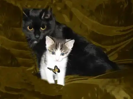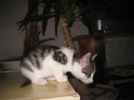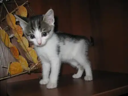Это Пчелка, вертушка и егоза. Она мелкая, но смышленая. Первая освоила мисочку, лоточек без промахов, вездесущая глазастая непоседа.