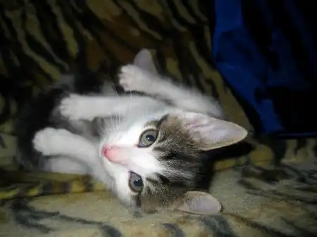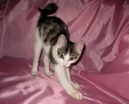 Окрас интересный. Белая с графитово-полосатыми пятнами, за что и получила кличку.