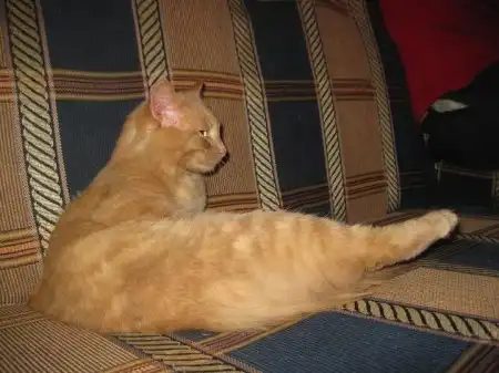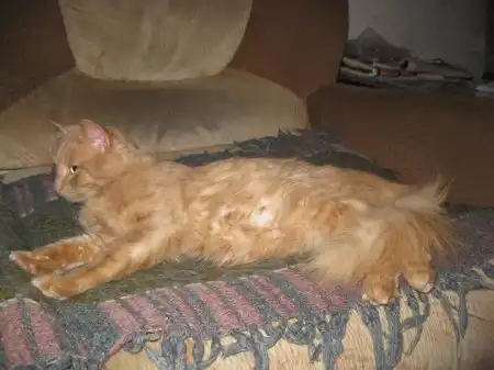 Знает лоток, в еде не превередлив. Никогда не царапнет попросту, очень мягкий характер. Пытается говорить на своём языке, смотрит в глаза или предупреждает, что ему больно (с ушами боролись). Деликатен.