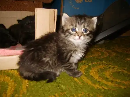 Где-то в начале ноября на свет появились очаровательные котята. Красивый, крупный папа и умная, симпотичная серая мама. Уже второй месяц с глазу на глаз - наскучили они друг другу хуже горькой редьки. Захотелось им накануне Нового года чего-то нового. Тем более - год Тигра... Но на улице холодно, и самостоятельно посмотреть что там, снаружи творится не выйдет. Охотно поселятся непременно в хорошей семье, желательно с детьми. У же всё знают и умеют. Очень любят играть, бегать и спать в теплом месте. Понимают и любят ласку. Обещают быть достаточно крупными, очень пушистыми и красивыми.