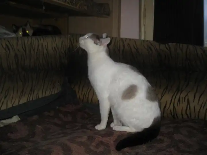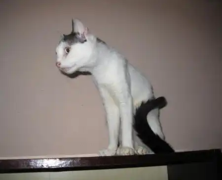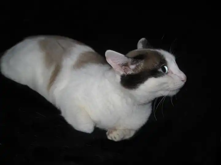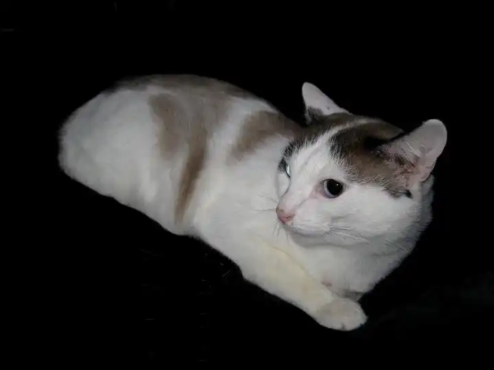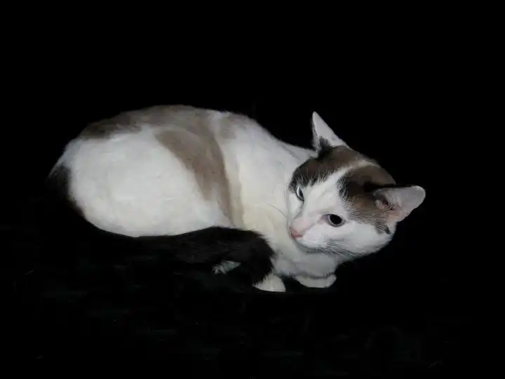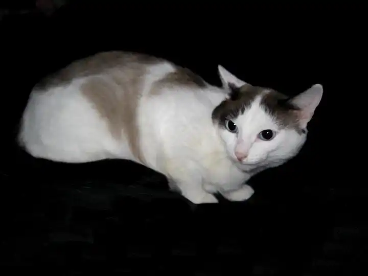 Зайчик - котик очень необычного окраса, белый с коричневыми и черными пятнами, с черным хвостиком. Его мама - колорпойнтовая кошка. У Зайчика от предков-тайцев длинное тело, большие уши и красивые ярко-голубые глаза. Зайчика вместе с его братом бросили, когда переезжали из дома под снос. Котики были спасены дедушкой, соседом хозяев. Зайчику 2 года, это очень нежный, ласковый. даже робкий котик, скорее всего, он встречался с немногими людьми, контактировал только с хозяевами, поэтому боится посторонних. Пользуется лотком, переведен на сухой корм. Зайчик ищет доброго, терпеливого хозяина. Кастрирован.
