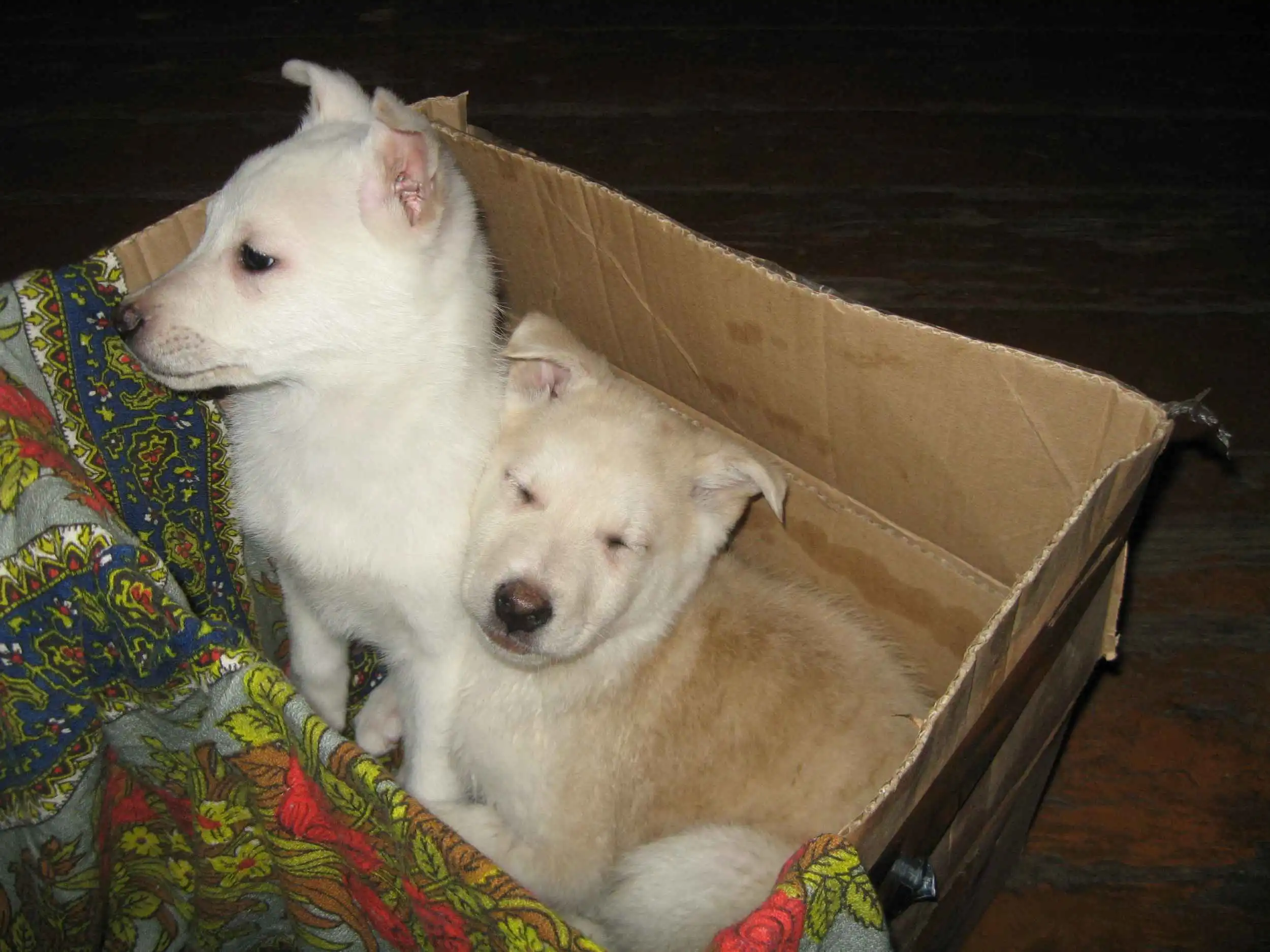 Мальчик более темный и девочка белая,возраст примерно 2 - 3 мес. на фото их мама которая тоже ищет новый дом... возраст примерно 1 - 1.5 года. Бездомная Собака ощенилась в сарае моих знакомых,те стали их кормить и взяли в дом на передержку... щенки очень дружелюбные,как и их мама в еде не привередливы. Будут хорошими друзьями и охранниками для вас и вашего дома! Очень вас ждут :)