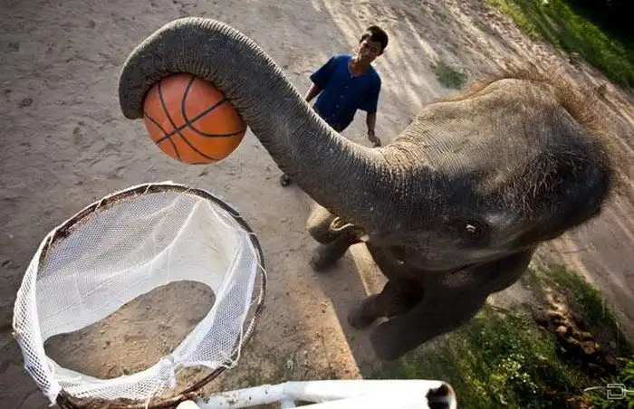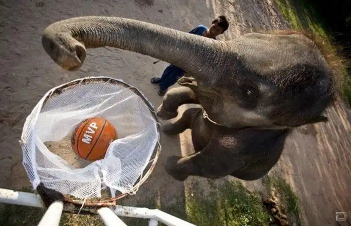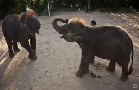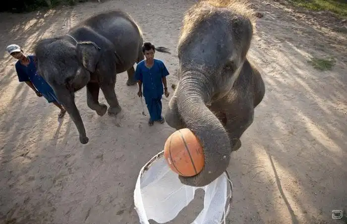На острове Кох Самуи в Таиланде есть центр помощи животным “Айленд Сафари”, звездами которого являются два слона - шестилетний Мали и девятилетний Токтак. Особенность этих гигантов состоит в том, что они умеют играть в баскетбол. Для NBA, конечно, рановато, но основным приемам они уже научились.
