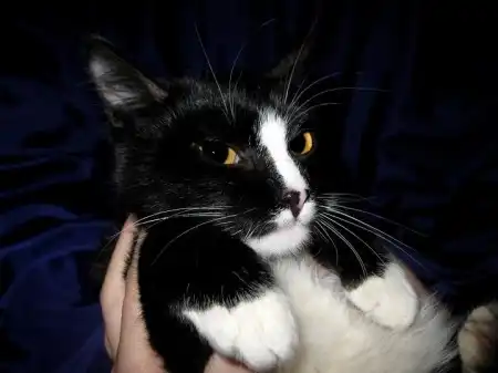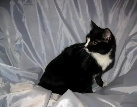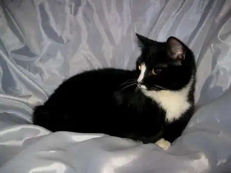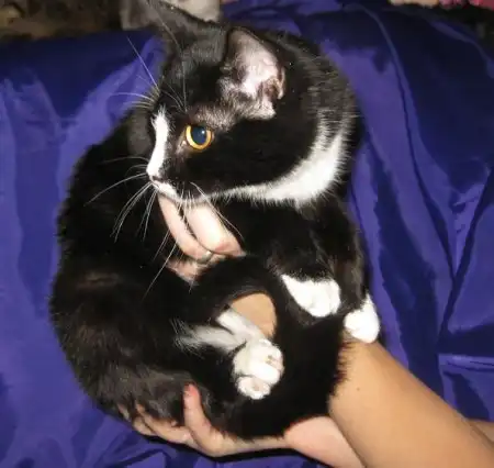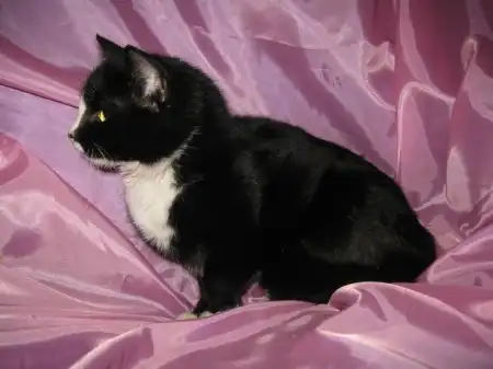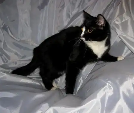 Кошечку Конфету нашли в морозы в подъезде, она явно жила в квартире, прекрасно знает, как себя нужно вести. Ей примерно 7-8 мес., черная с белым воротничком, в белых туфельках и с белым носиком, очень нежная, трогательная, ласковая. Видно, что она была единственной, хотя она и хорошо ладит с другими кошачьими, но не очень довольна тем, что ей достается мало внимания. Шерстка у нее очень мягкая, приятная, и сама кошечка вся такая ладненькая, что постоянно хочется ее потискать и погладить. Кисуне очень нужен дом, внимание и ласка хозяев. Она хорошо кушает, лотком пользуется, имеет сертификат на скидку при стерилизации.