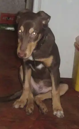 Отдается щенок 4,5 - 5 мес. Очень похож окрасом и костяком на добермана.
