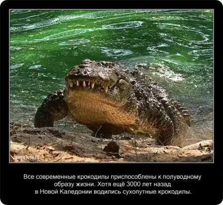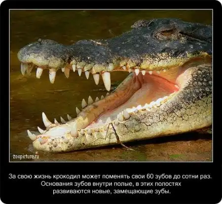 Ещё крокодилы единственные животные,которые плачут во время употребления пищи,ибо черепно мозговой нерв отвечающий за иннервацию челюстей по какой-то злой шутке природы ещё иннервирует слёзные железы,в результате чего при потреблении пищи крокодил льёт самые настоящие слёзы - отсюда и появилось выражение "крокодильи слёзы".Вот так)