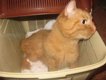 Кошка была прооперирована (ампутированы задняя лапа и хвост).