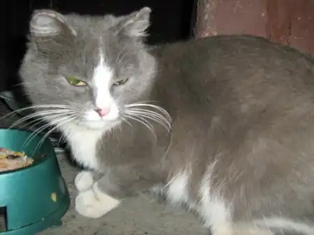 Кошечка, у неё подмёрзли ушки, она очень доброжелательна, не боится людей. Очень красивые зелёные глаза. Кушает всё что дают, похоже, что была домашней.