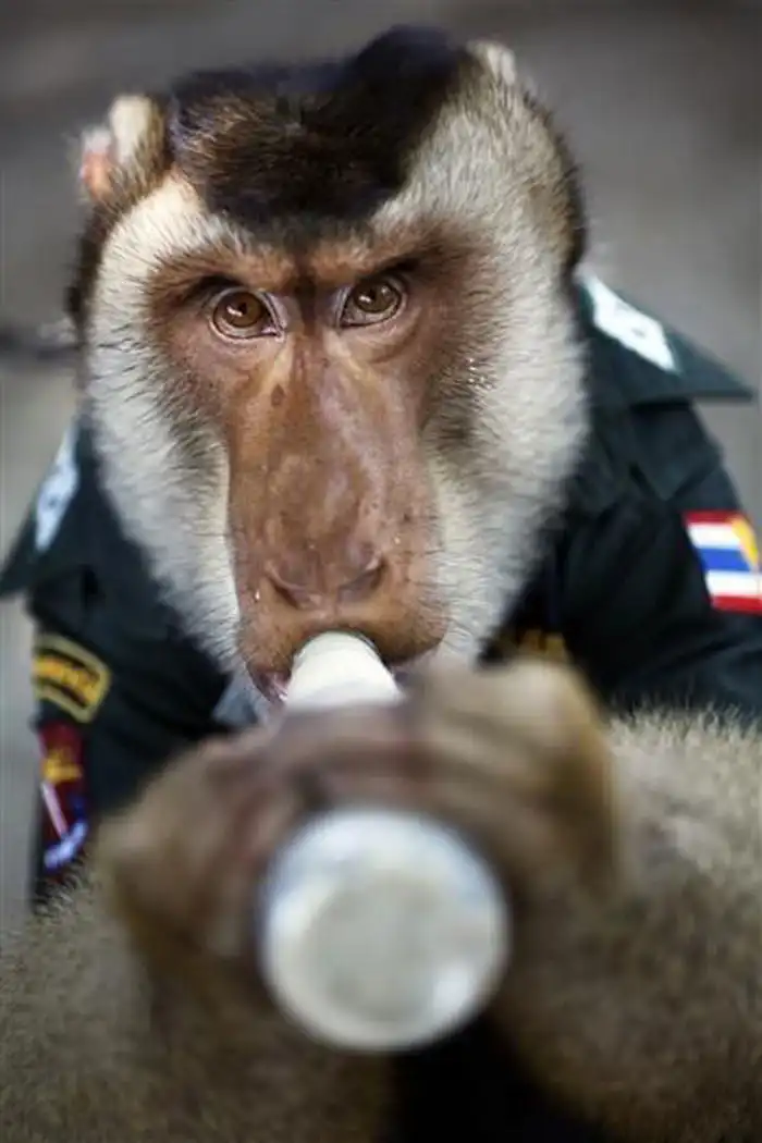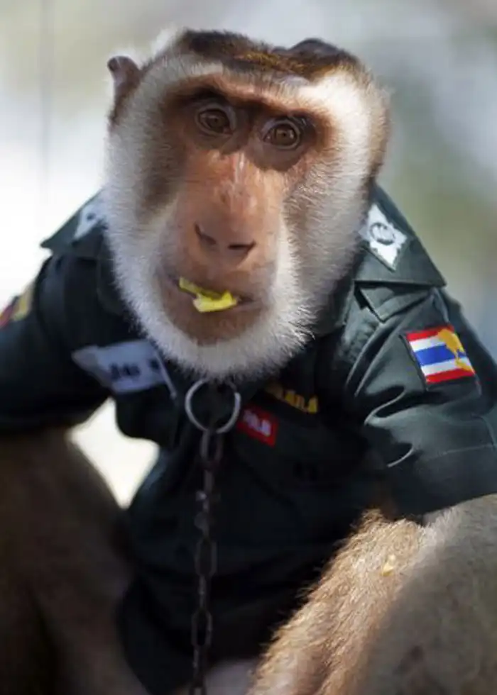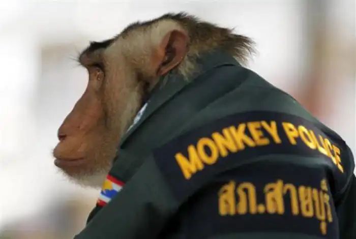 В Таиланде появился необычный сотрудник полиции. Сотрудники полиции дали ей прозвище "сантисук" (Santisuk), что в переводе с тайского означает "мир". Сотрудники полиции нашли обезьяну, у дороги в области Яла в южной части Таиланда в раненом состоянии и взяли его. Теперь в операциях стражей порядка принимает участие и 5-летняя обезьяна, одетая в полицейскую униформу.