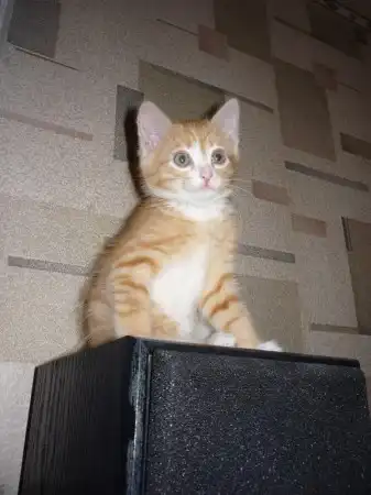 Сегодня муж пошёл в магазин, а вернулся не один. От самого магазина до дома за ним увязалось грязное, мокрое, замёрзшее существо, которое только жалобным плачем напоминало о том, что это маленький котёнок. Один раз заглянув в его жалобные, умоляющие глаза мы уже не смогли отвести взгляд в сторону и отшвырнув, закрыть перед ним дверь. Котёнок был немедленно помещён в ванну, тщательно вымыт шампунем от блох и накормлен. При детальном осмотре он оказался мальчиком. И вот уже пред нами предстал очень красивый, игривый златовласый ребятёнок. Малыш очень умненький, с удовольствием хрустел "Вискасом", а после еды сразу сходил в лоток. И мы уже, было, решили оставить его у себя, любить и лелеять, НО... У нас уже есть взрослый кот, который очень ревностно отнёсся к маленькому. Постоянно его обижает и бьёт. А малыш и так уже многого натерпелся в своей короткой котячьей жизни. Поэтому ему срочно ищется очень добрый, ласковый и любящий хозяин. Котик обязательно ответит взаимностью! Он очень ждёт СВОЕГО человека, с которым будет дружить, любить и забравшись на колени, ему одному петь свою мурлыкающую песенку. Ведь это будет его ХОЗЯИН!