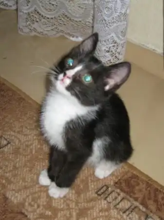 Отдам красивого котенка черно-белого окраса (мальчика) в хорошие руки. Спинка и хвост черные, грудка и задние лапки белые, на передних лапах белые "тапочки". Крошка здоров, приучен к лотку, ест все. На вид 1,5 мес. Зовем "Малыш". Котенок веселый, игривый, ласковый, очень общительный. Малыш ищет добрых и любящих хозяев.