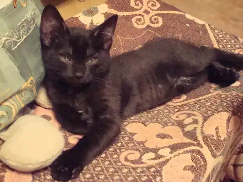 Оба пацаны, серенький очень интеллектуальный, но со сломанным хвостом (родовая травма, но жить не мешает и не требует лечения), черненький с белым пятном на пузе, весьма интеллигентный - любит спокойствие и ласку. К горшку приучены. Серый будет пушистым, а черный - гладкошерстый.
