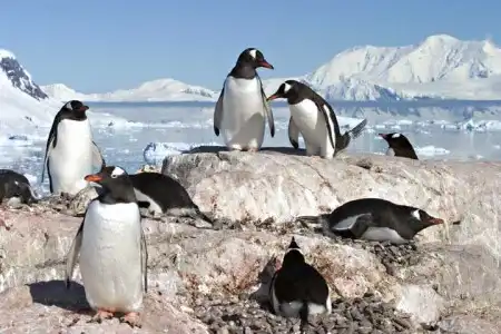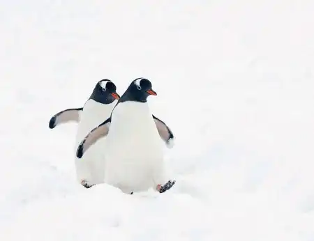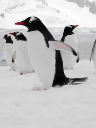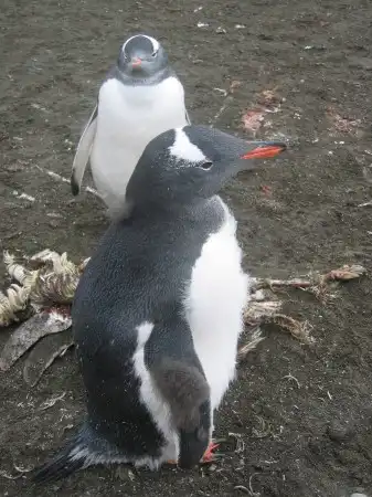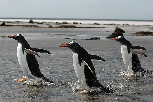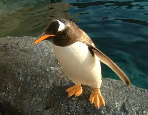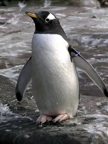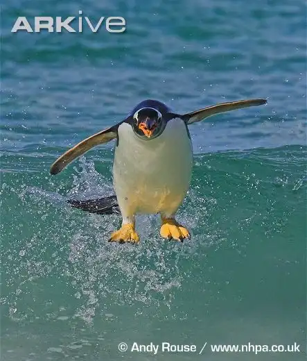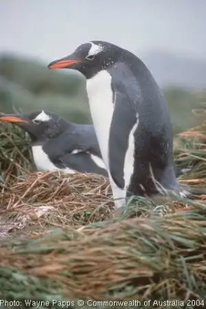 При росте 75-90 см и весе около 6 кг этот пингвин является самым крупным представителем рода длиннохвостых пингвинов. От других видов его легко отличить по белой полосе, которая проходит по темени от глаза к глазу. В литературе его ошибочно часто называют ослиным. Но и настоящее название папуасского пингвина является зоологическим казусом, т.к. в Новой Гвинее пингвины не живут. Под таким названием его описал тот самый Д. Форстер, имя которого носит императорский пингвин.